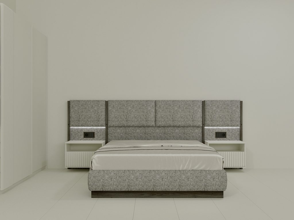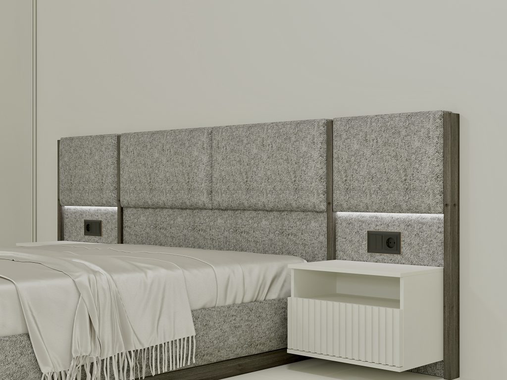 Нощни шкафчета – висок практичен гръб  –  система “ hаnging up“  – опция скриване на кабели и вграждане конзола за контакт – въздушни канали – за минаването на кабелите –  конзола и контакти, ключове за осветление – вижте допълнителните опции. Водач на чекмеджетата  – скрити Quadro Hettich – плавно затваряне, начин на монтиране – стенен монтаж – окачане на стена – 2 бр. в к-т;