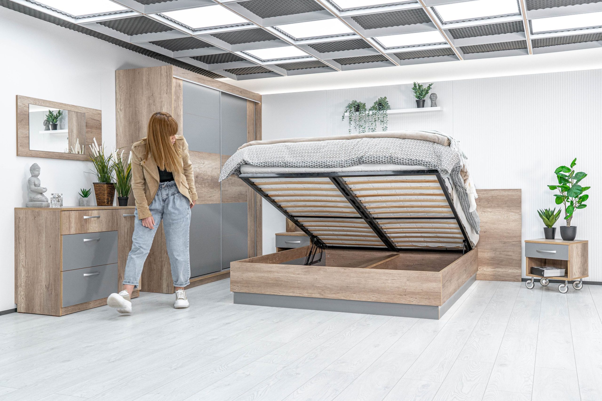 Леглото е подходящо за монтаж на еднолицев или двойнолицев матрак, зависимост от вашите желания. За двойнолицев матрак е необходимо закупуване на подматрачна ламелна рамка, която осигурява обдишване на матрака удължаваща неговият живот. В комплекта е включен и газов механизъм за практично използване на свободното пространство под леглото.