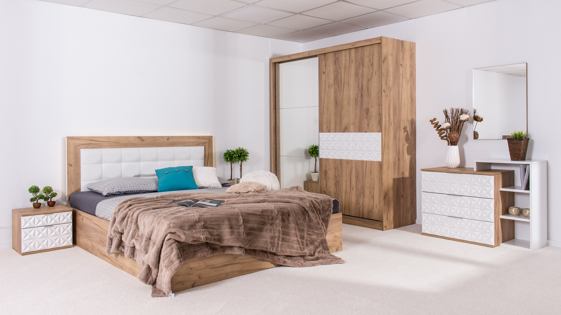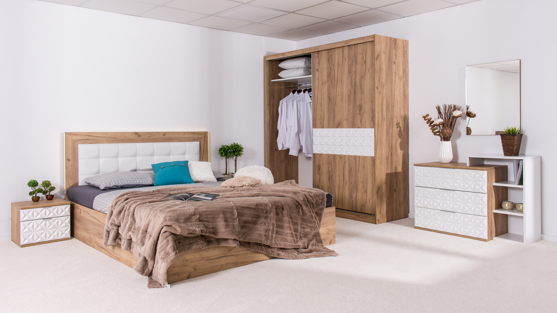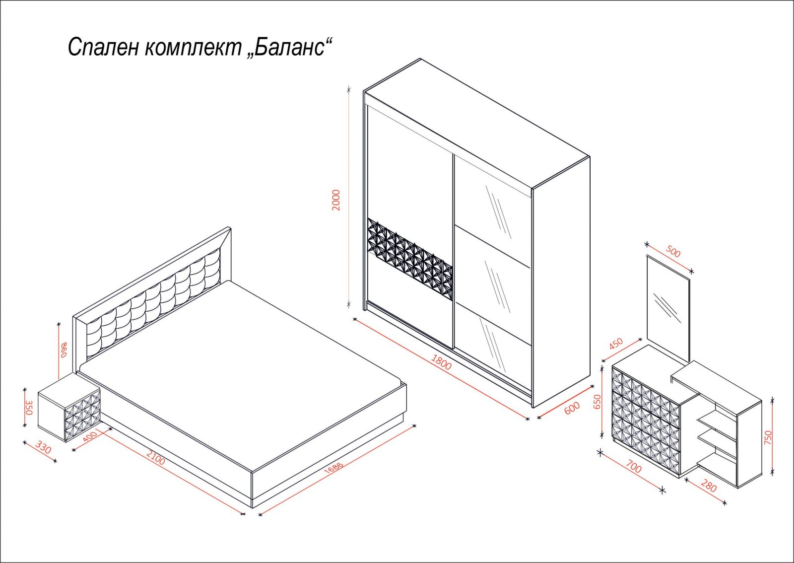 [vc_row type=“in_container“ full_screen_row_position=“middle“ column_margin=“default“ column_direction=“default“ column_direction_tablet=“default“ column_direction_phone=“default“ scene_position=“center“ text_color=“dark“ text_align=“left“ row_border_radius=“none“ row_border_radius_applies=“bg“ overflow=“visible“ overlay_strength=“0.3″ gradient_direction=“left_to_right“ shape_divider_position=“bottom“ bg_image_animation=“none“][vc_column column_padding=“no-extra-padding“ column_padding_tablet=“inherit“ column_padding_phone=“inherit“ column_padding_position=“all“ column_element_direction_desktop=“default“ column_element_spacing=“default“ desktop_text_alignment=“default“ tablet_text_alignment=“default“ phone_text_alignment=“default“ background_color_opacity=“1″ background_hover_color_opacity=“1″ column_backdrop_filter=“none“ column_shadow=“none“ column_border_radius=“none“ column_link_target=“_self“ column_position=“default“ gradient_direction=“left_to_right“ overlay_strength=“0.3″ width=“1/1″ tablet_width_inherit=“default“ animation_type=“default“ bg_image_animation=“none“ border_type=“simple“ column_border_width=“none“ column_border_style=“solid“][vc_column_text el_class=“description-holder-field“]спален комплект „Баланс“ е произведен от висококачествено ламинирано ПДЧ 18 мм, основен декор – дъб риволи. Луксозни призми – бял гланц. Всички детайли са кантирани с кант с дебелина 1,00 мм – фасетиран по ръбовете;