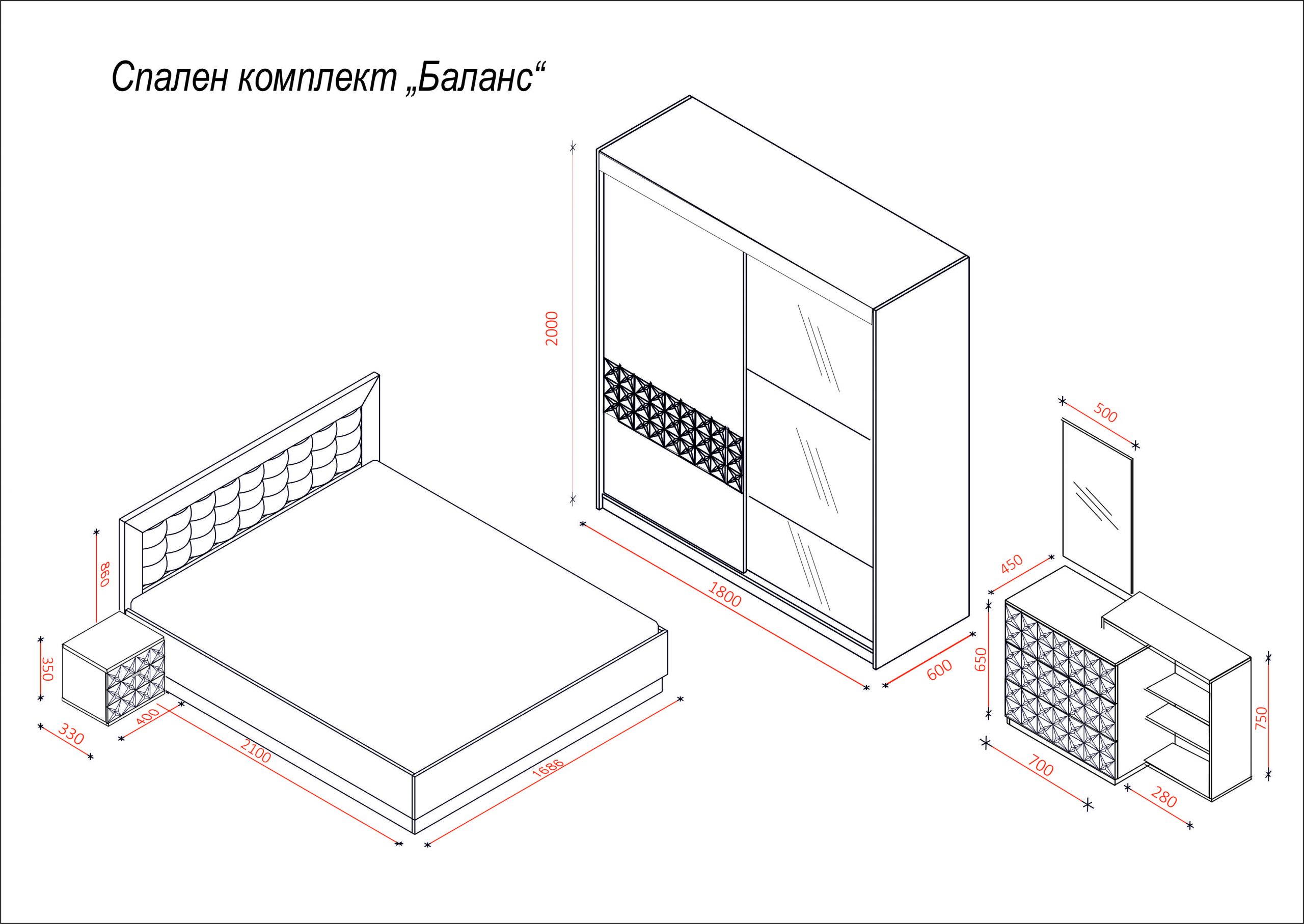 4. За представените снимки СК ”Баланс” е с монтиран двойнолицев матрак, подматрачна ламелна рамка с газов механизъм за повдигане, във всички останали комплектовки този спален комплект се предлага без тези изделия и те са допълнителни опции с допълнително заплащане (виж съответната категория)!