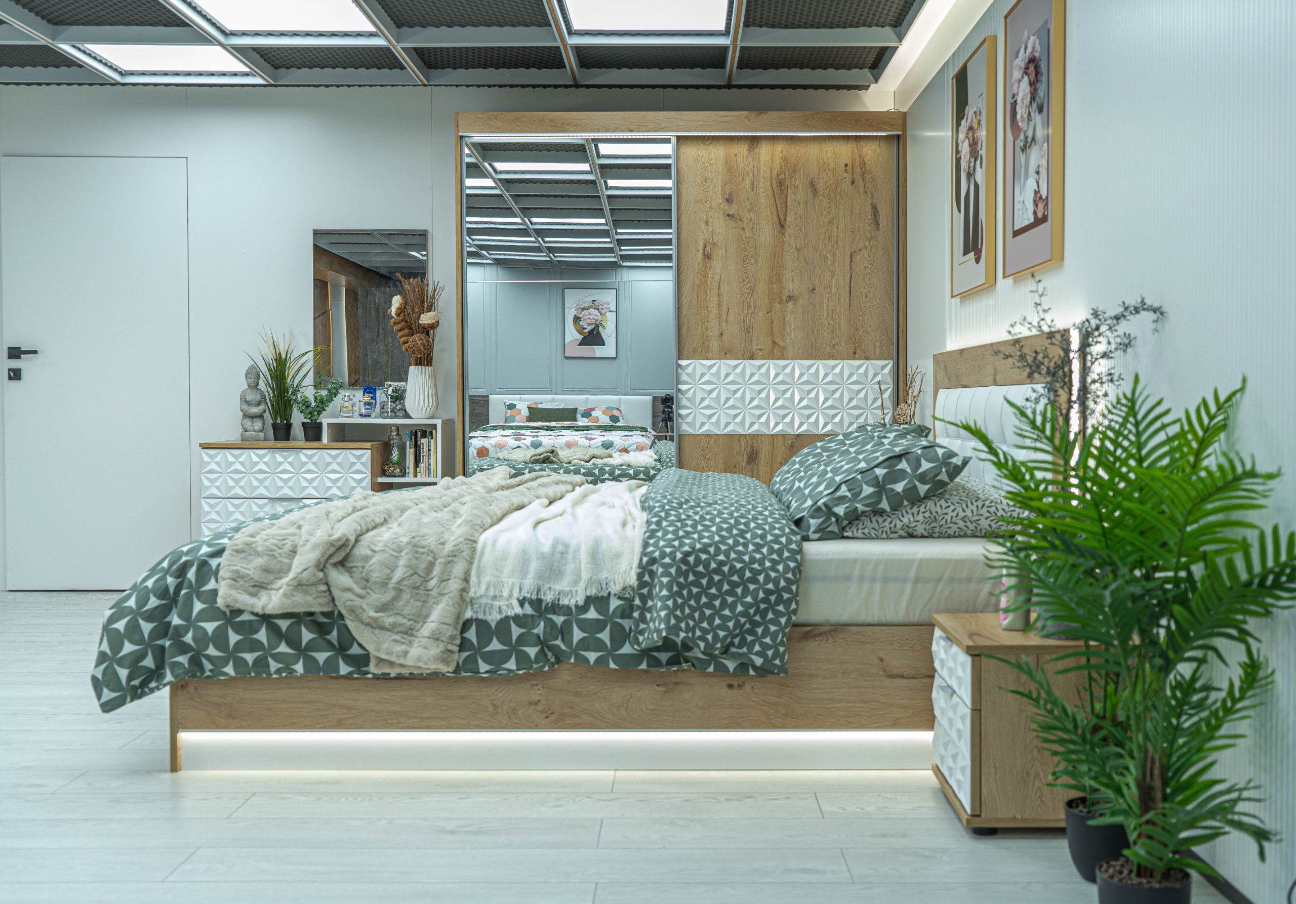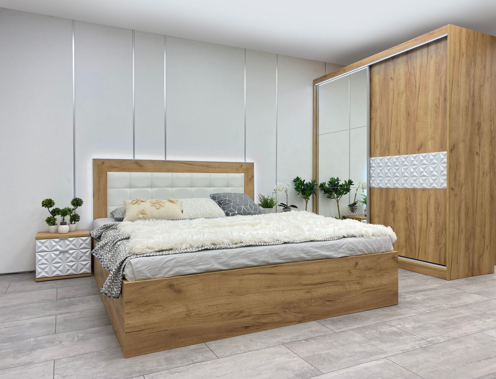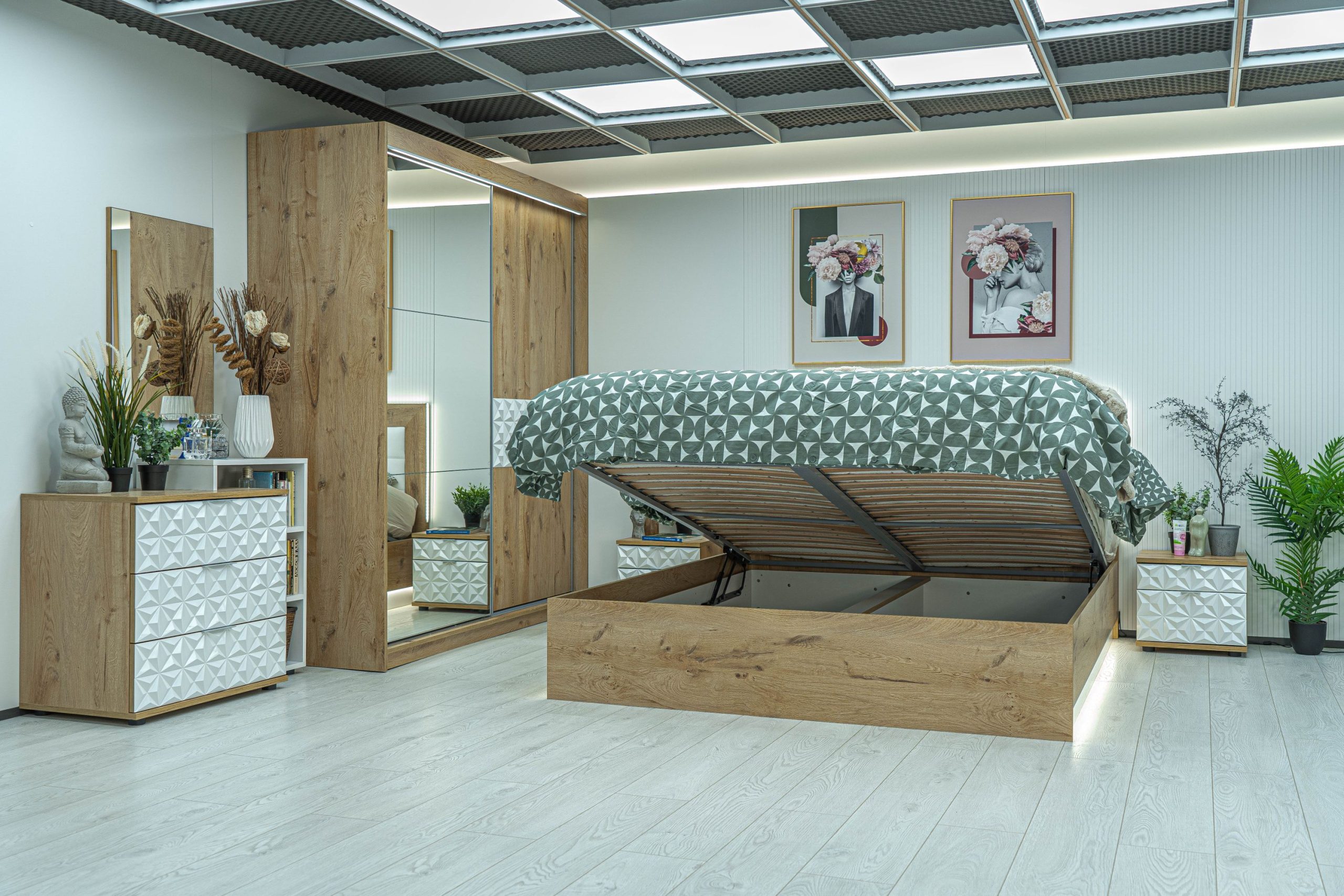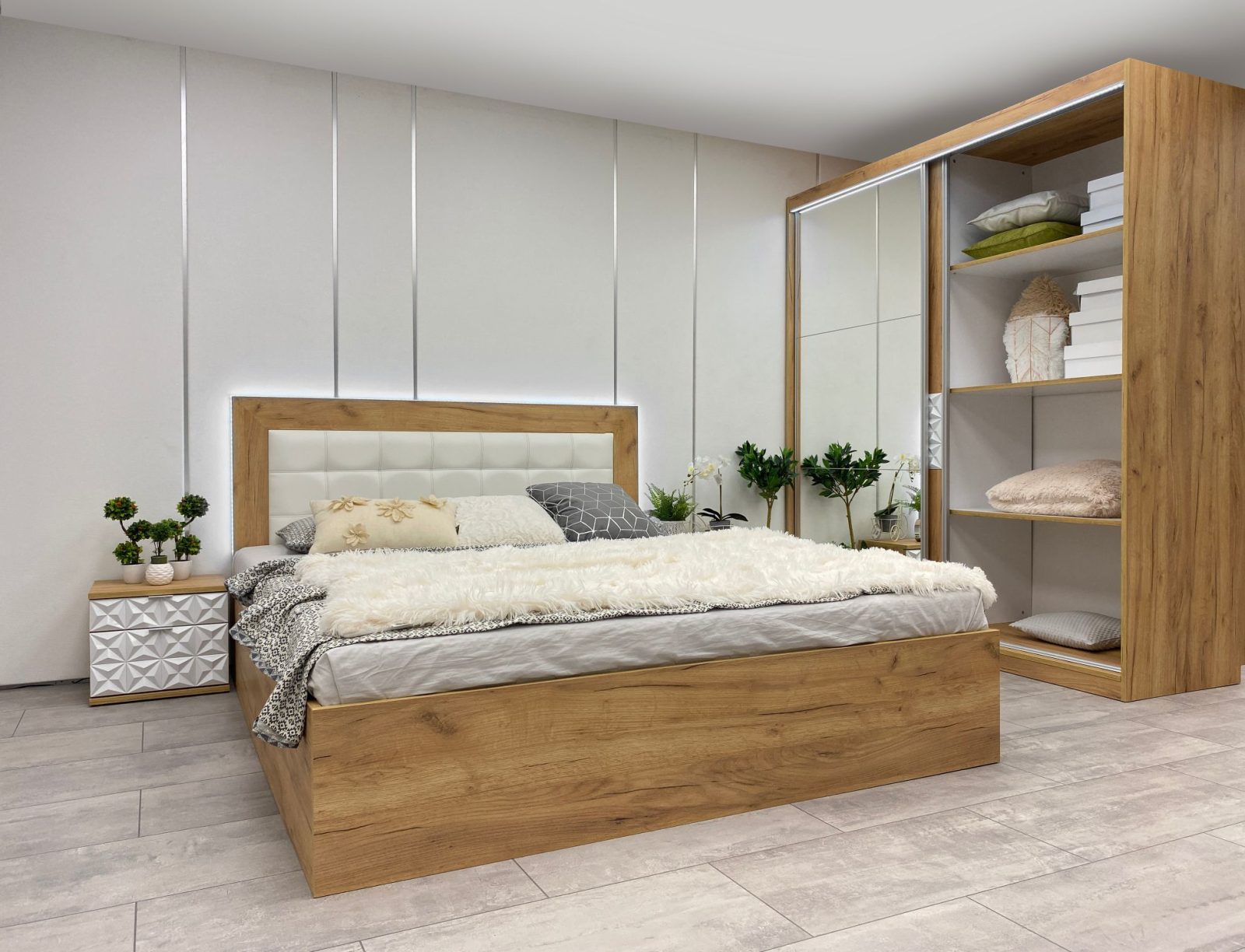 Леглото е подходящо за монтаж на еднолицев или двойнолицев матрак, зависимост от вашите желания. За двойнолицев матрак е необходимо закупуване на подматрачна ламелна рамка, която осигурява обдишване на матрака удължаваща неговият живот. За вашето удобство в цената на комплекта е включен газов механизъм, за практично използване на свободното пространство под леглото.