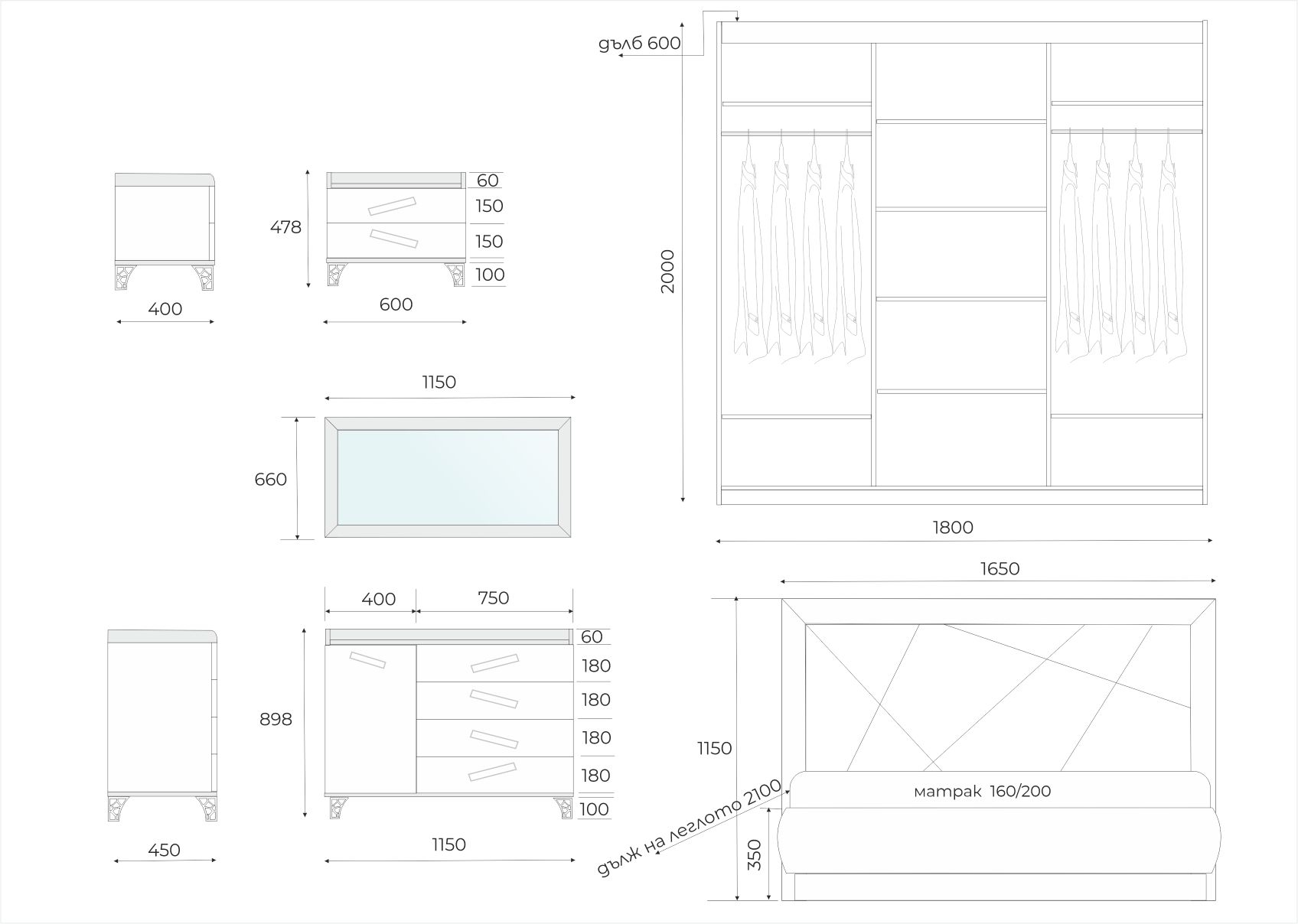 Спален комплект „Еуфория“ за м/к 160/200