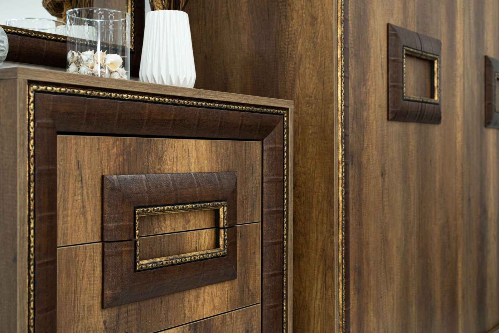 СК „Кая“ изработена от висококачествено ламинирано ПДЧ 18 мм –  декор – барок – фрезе.