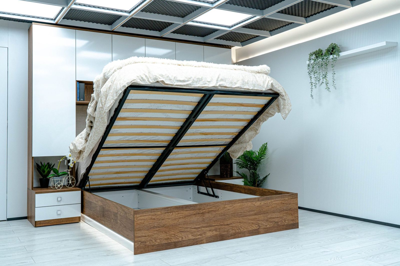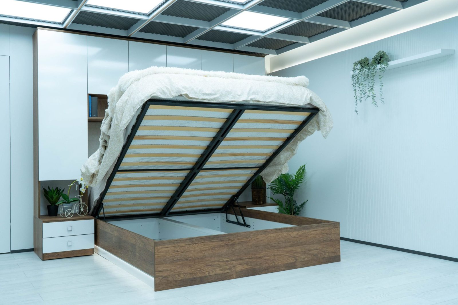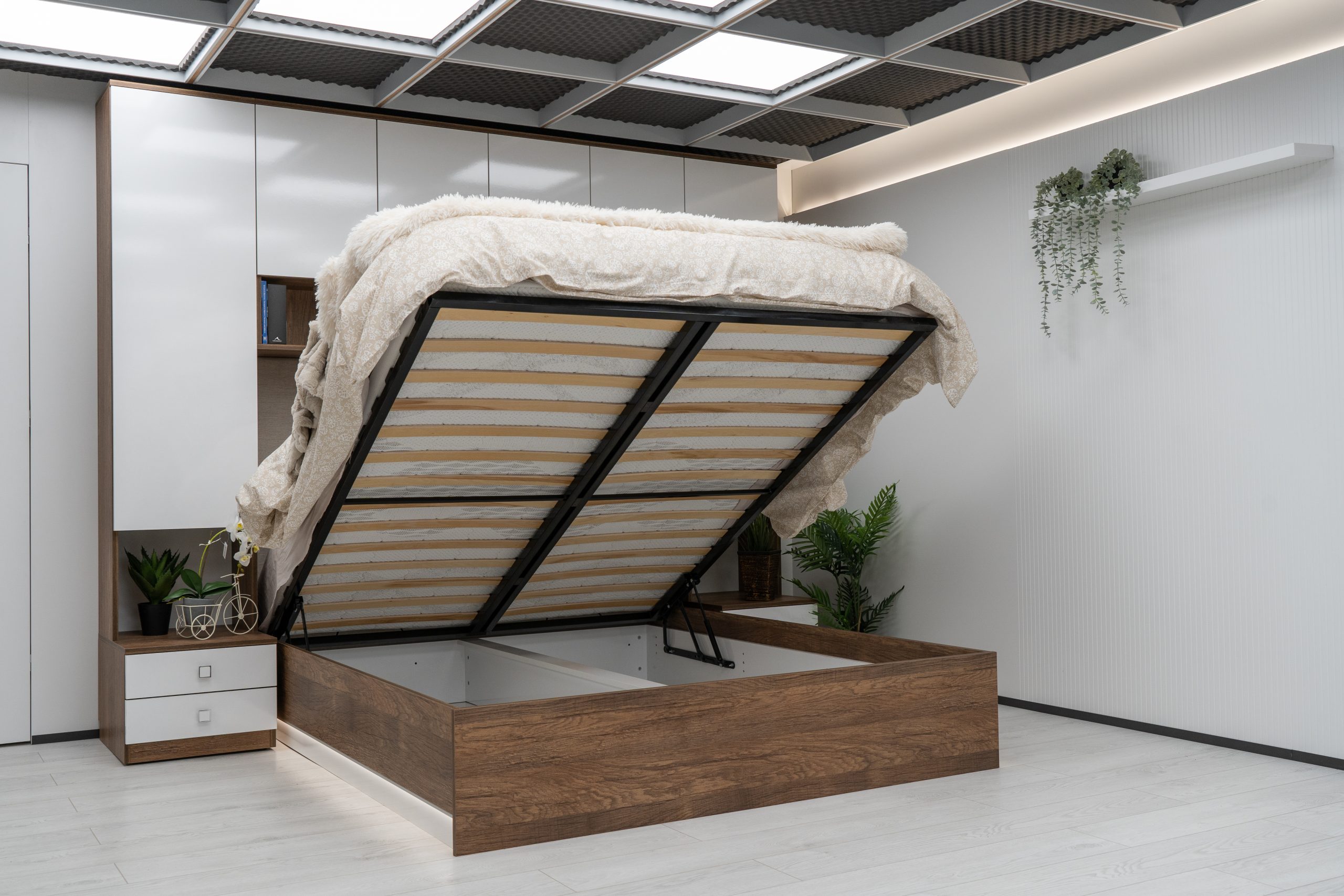 Леглото е подходящо за монтаж на еднолицев или двулицев матрак зависимост от вашите желания. За двулицев матрак е необходимо закупуване на подматрачна ламелна рамка, която осигурява  обдишване на матрака удължаваща неговия живот. За практично използване на свободното пространство под леглото е включен към цената газов механизъм и дъно.