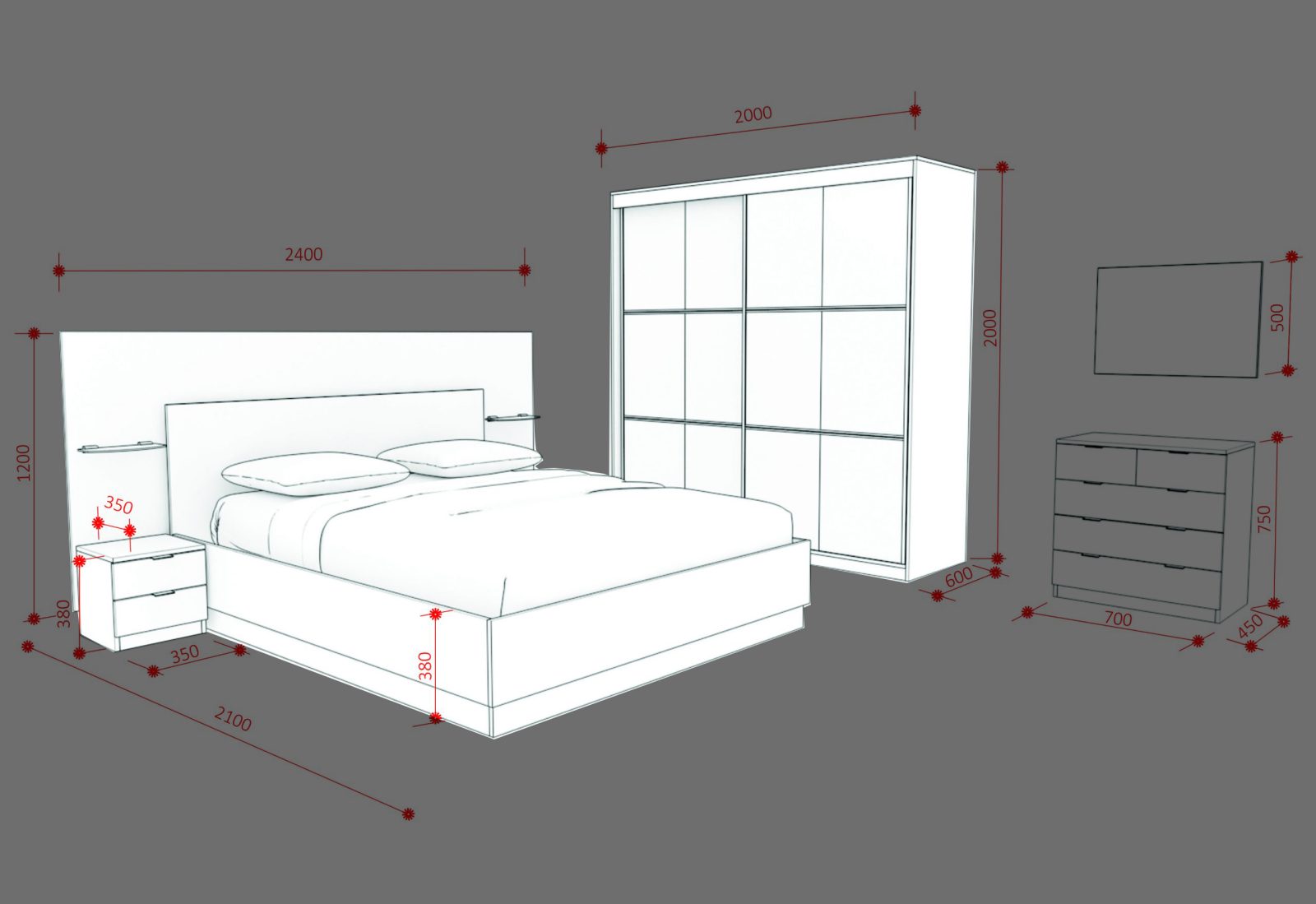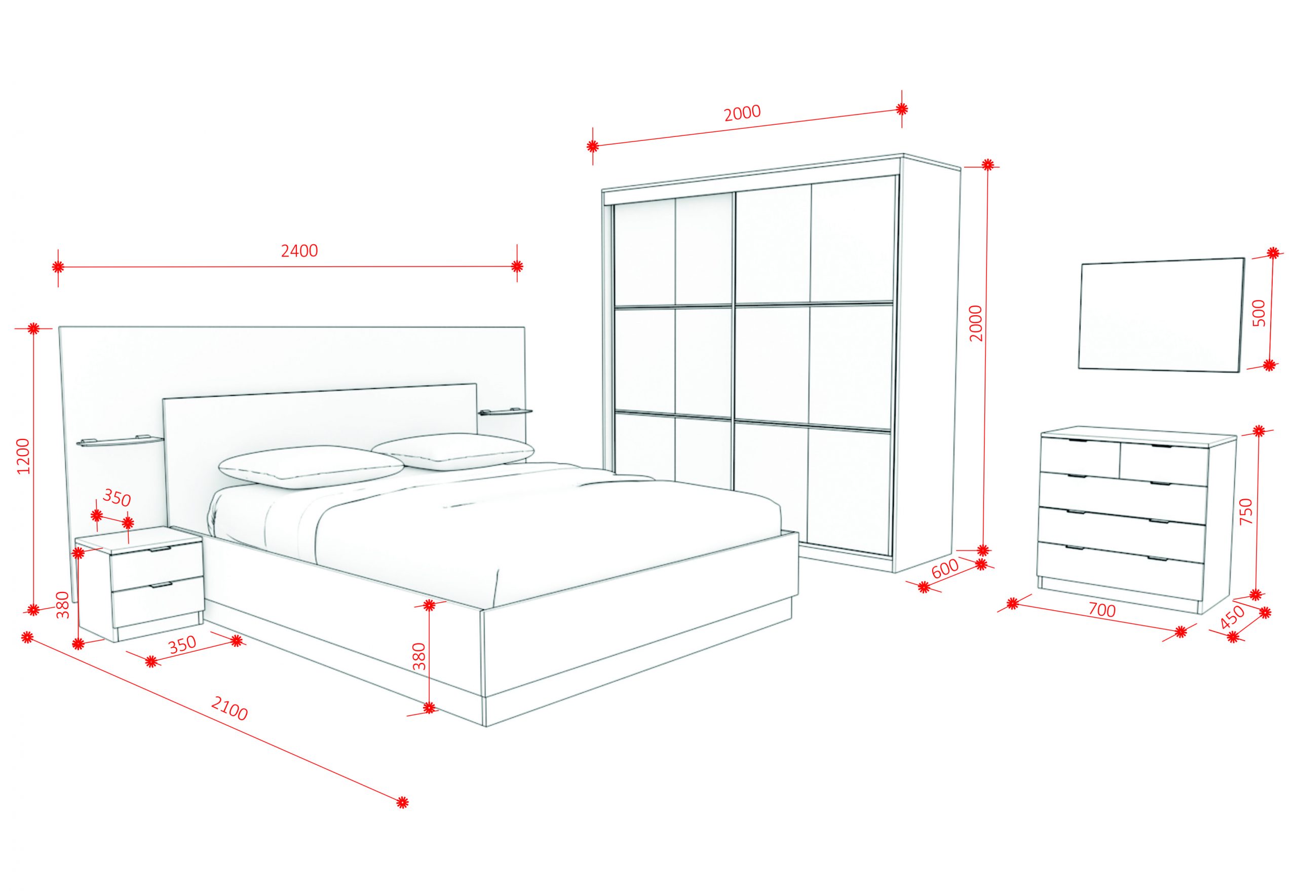Гардероб: дължина 2000 мм, височина 2000 мм, дълбочина 600 мм;