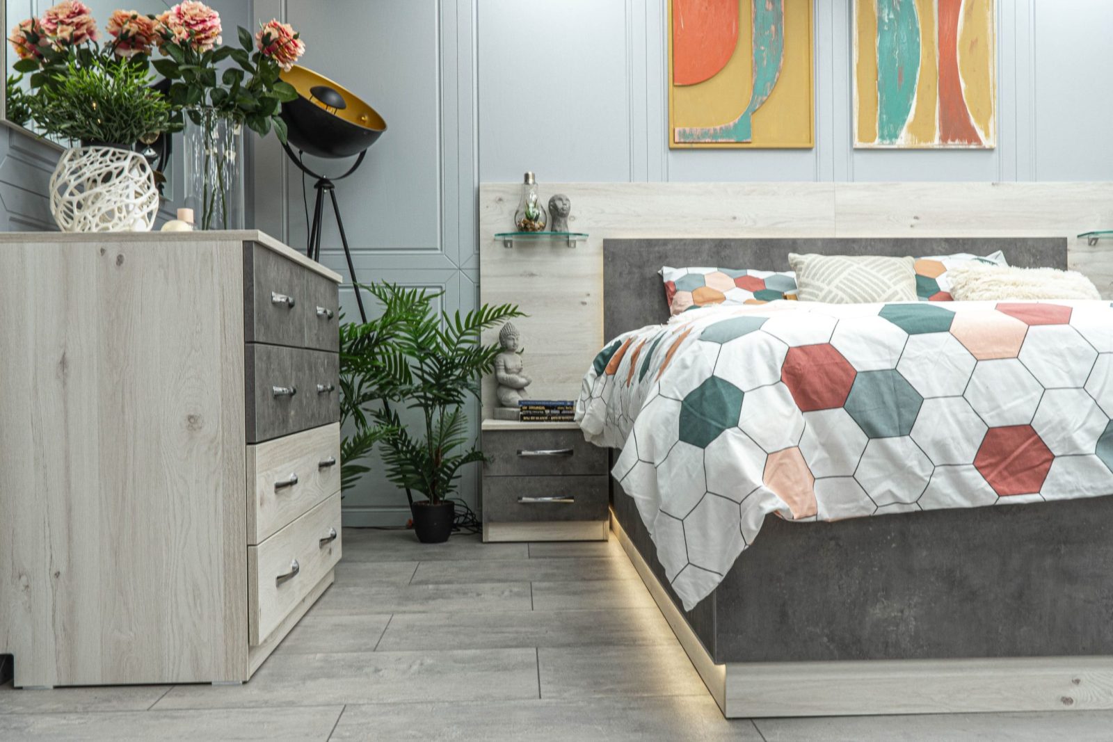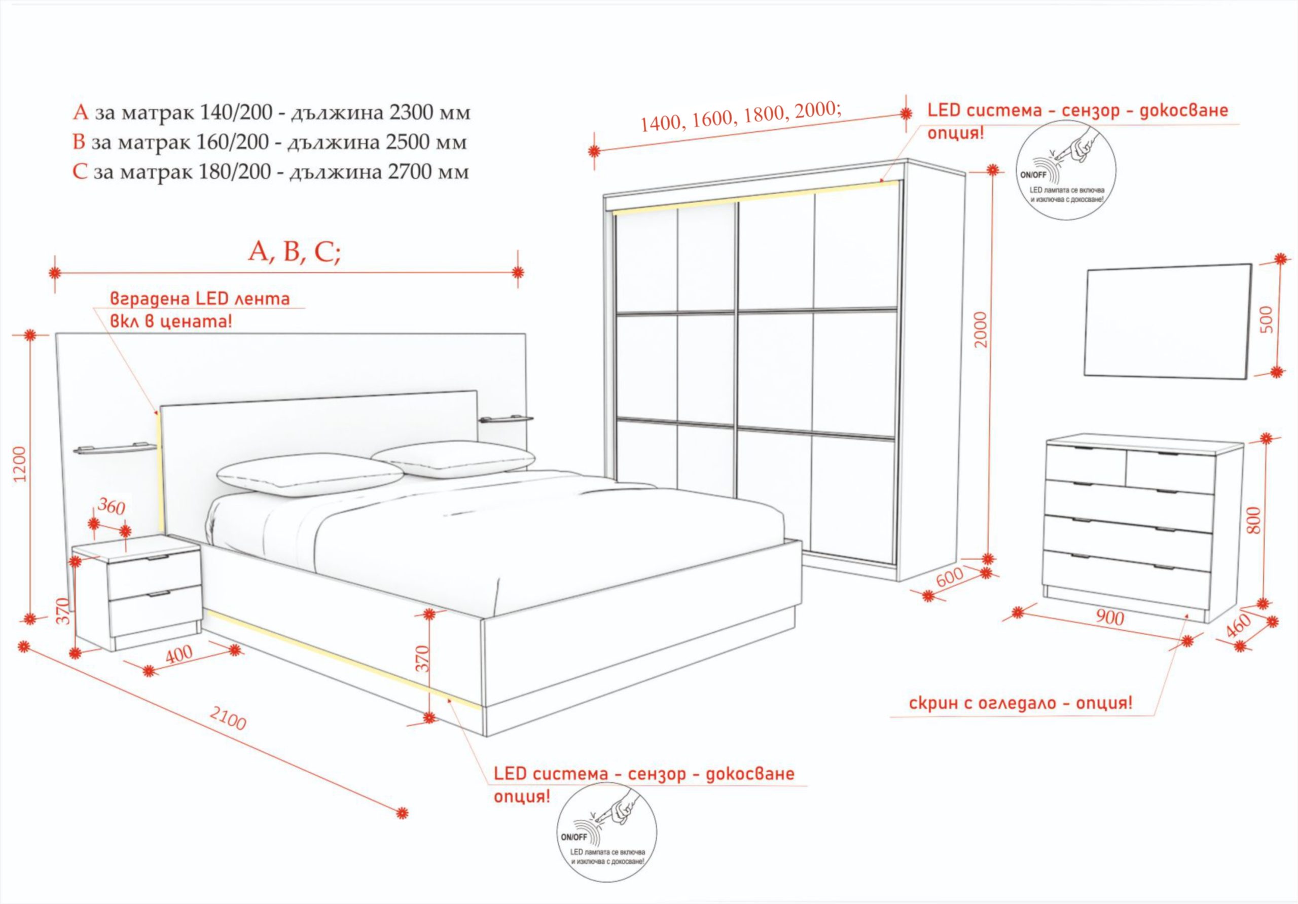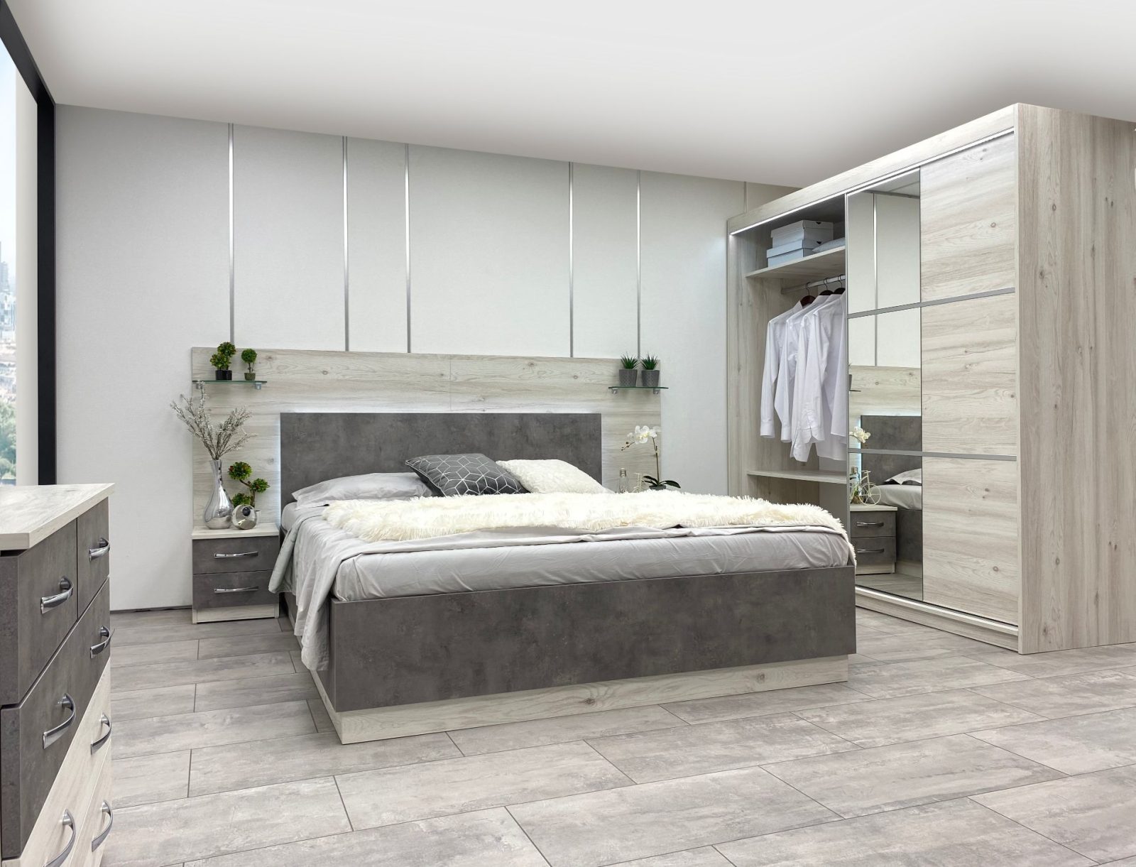 [vc_row type=“in_container“ full_screen_row_position=“middle“ column_margin=“default“ column_direction=“default“ column_direction_tablet=“default“ column_direction_phone=“default“ scene_position=“center“ text_color=“dark“ text_align=“left“ row_border_radius=“none“ row_border_radius_applies=“bg“ overflow=“visible“ overlay_strength=“0.3″ gradient_direction=“left_to_right“ shape_divider_position=“bottom“ bg_image_animation=“none“][vc_column column_padding=“no-extra-padding“ column_padding_tablet=“inherit“ column_padding_phone=“inherit“ column_padding_position=“all“ column_element_direction_desktop=“default“ column_element_spacing=“default“ desktop_text_alignment=“default“ tablet_text_alignment=“default“ phone_text_alignment=“default“ background_color_opacity=“1″ background_hover_color_opacity=“1″ column_backdrop_filter=“none“ column_shadow=“none“ column_border_radius=“none“ column_link_target=“_self“ column_position=“default“ gradient_direction=“left_to_right“ overlay_strength=“0.3″ width=“1/1″ tablet_width_inherit=“default“ animation_type=“default“ bg_image_animation=“none“ border_type=“simple“ column_border_width=“none“ column_border_style=“solid“][vc_column_text el_class=“description-holder-field“]спален комплект „Нове“ е произведен от висококачествено ламинирано ПДЧ 18 мм, основен декор капри, съпътстващ  декор – бетон тъмен. Всички части са обкантени от кант с дебелина 1,00 мм –  фасетиран по ръбовете;