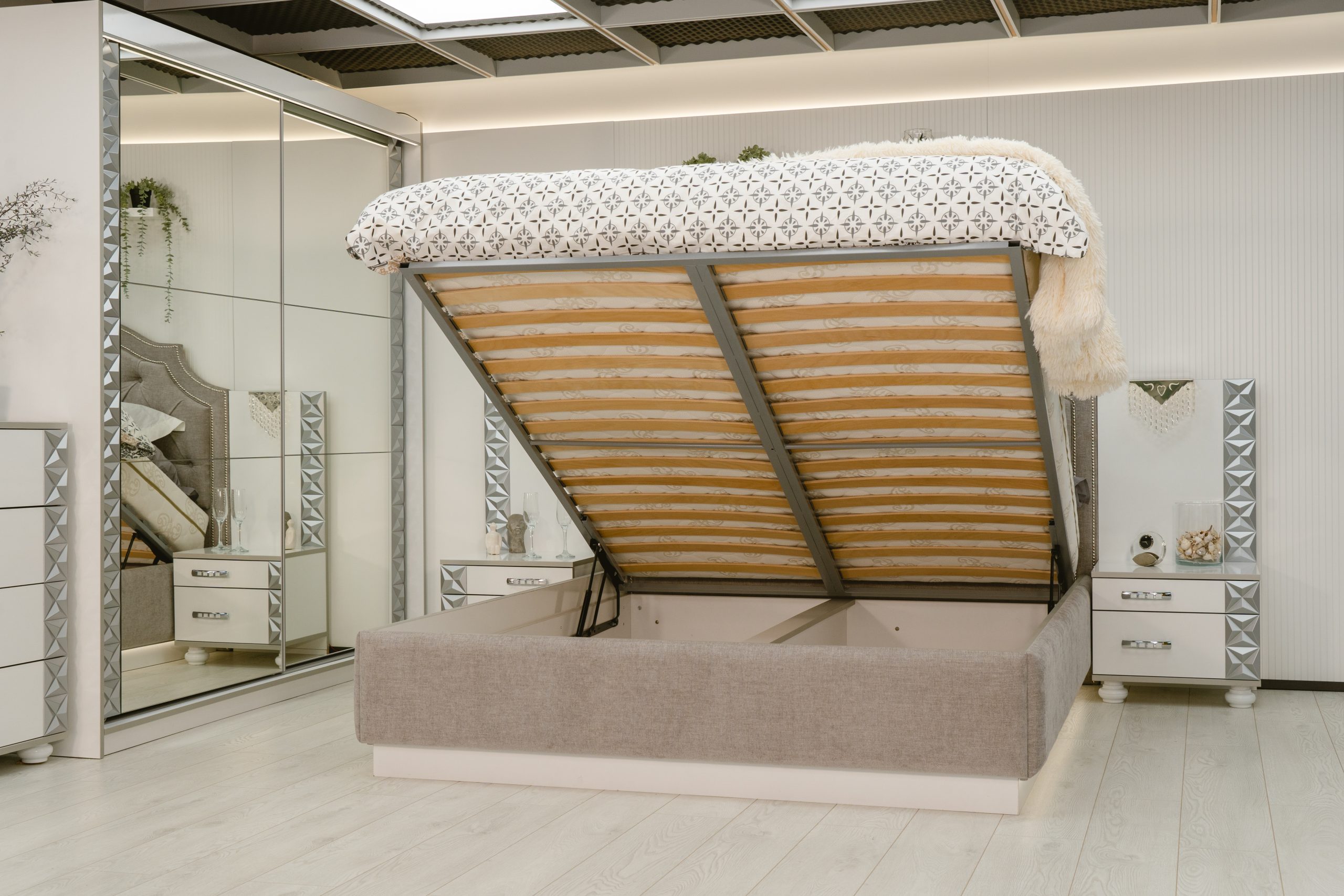 Леглото е подходящо за монтаж на еднолицев или двулицев матрак зависимост от вашите желания. За двулицев матрак е необходимо закупуване на подматрачна ламелна рамка, която осигурява обдишване на матрака и удължава неговия живот. За практично използване на свободното пространство под леглото сме предвидили и включили в цената на изделието и газов амортисьор.