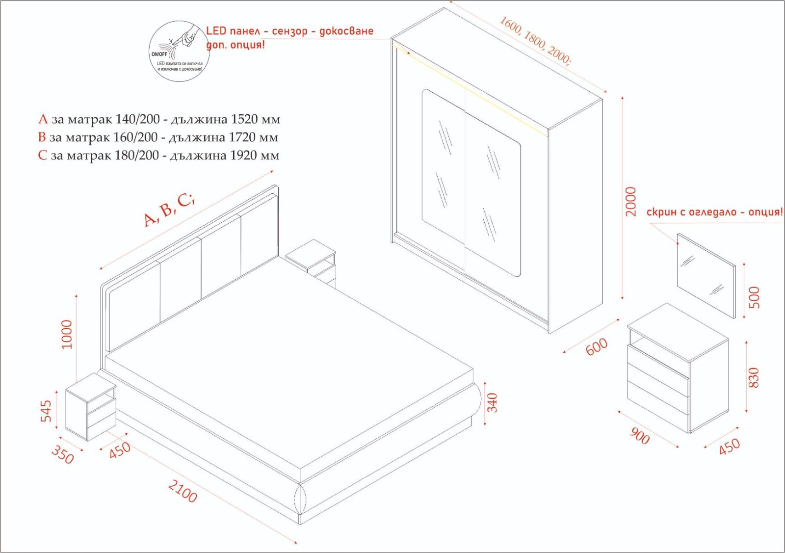 4. За представените снимки СК ”Софт” е с монтиран двойнолицев матрак и подматрачна ламелна рамка. Комплекта се предлага без тези изделия и те са допълнителни опции с допълнително заплащане (виж съответната категория)!