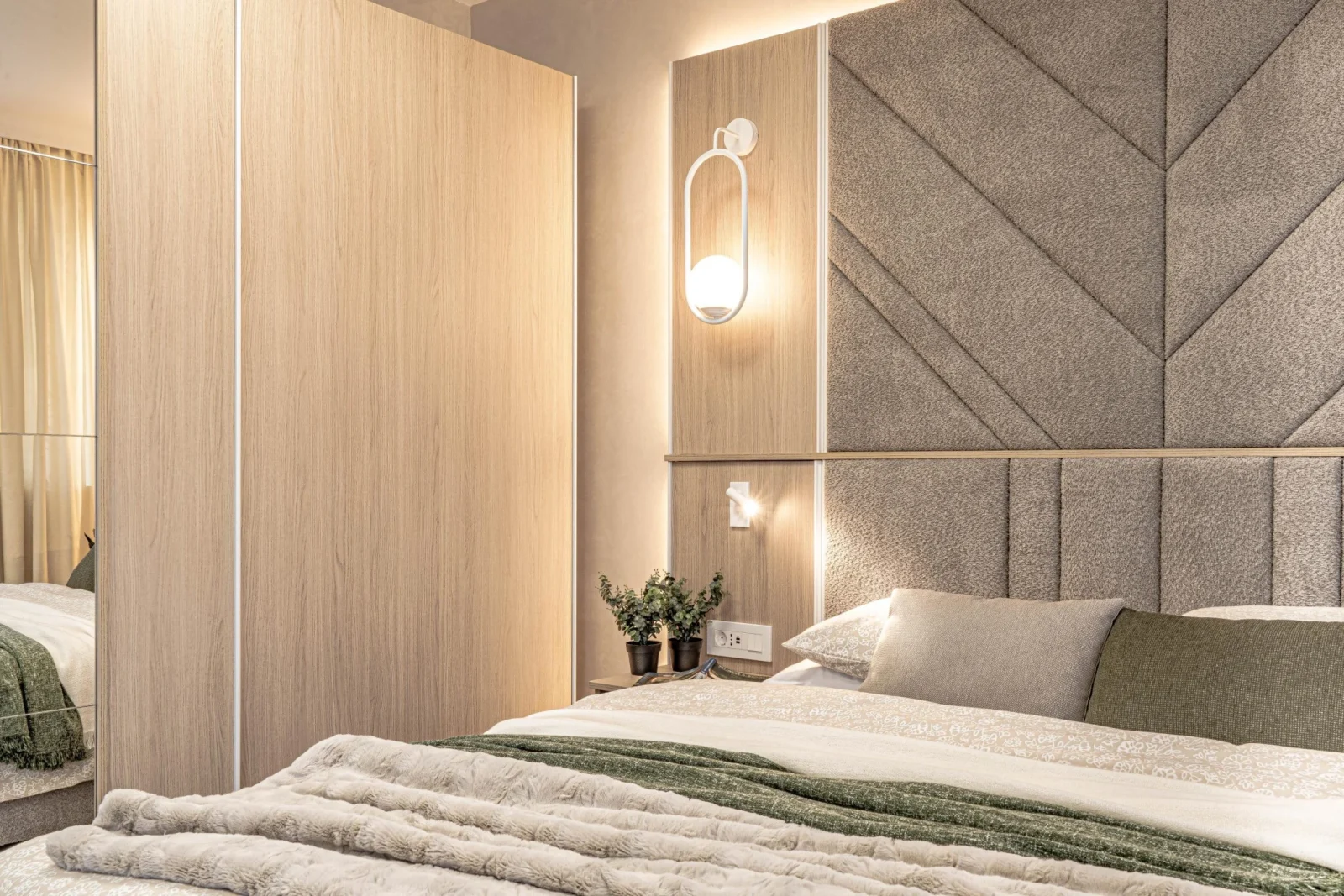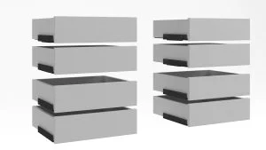Нощни шкафчета – висок практичен гръб – система “ hаnging up“ – опция скриване на кабели и вграждане конзола за контакт – въздушни канали – за минаването на кабелите – конзола и контакти, ключове за осветление – вижте допълнителните опции. Водач на чекмеджетата – скрити Quadro Hettich – плавно затваряне, начин на монтиране – стенен монтаж – окачане на стена – 2 бр. в к-т;